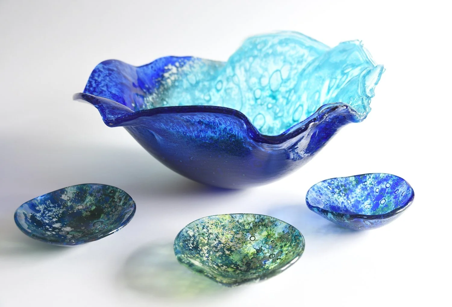 Large sculptural sea bowl (diameter 42cm) and three mini sea bowls